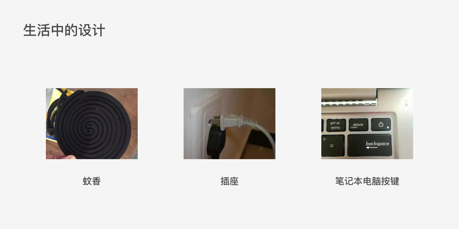 这是一盘题主从来没有完整拆出来过的蚊香,每次都是小心翼翼的一点点拆分,但是总遇到不小心掰断或者直接崩盘的情况。还有后面这个插座,基本上只能当一个插口来用,还真是鱼(两相)与熊掌(三相)不可兼得啊。再看最后这个电脑按键,我就想删除一下,一不小心就关机了。。。咱们来看一下这几个产品设计,能不能把人气死?能气疯!设计这些产品的人应该自己都不会用吧。