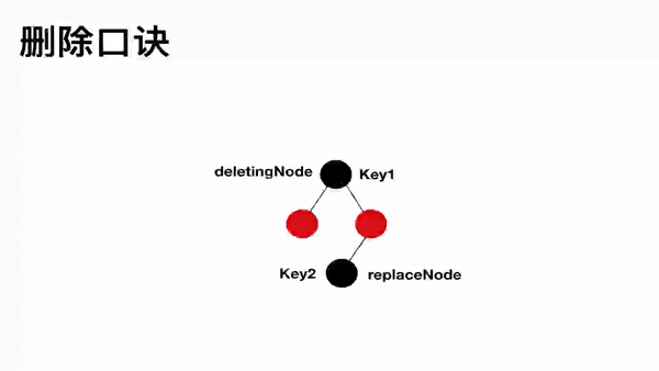 删除节点两后代,交换键值往下看。
