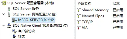 SQLServer Configuration Manager中的MSSQLSERVER协议,启用TCP/IP