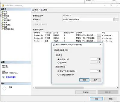在这里可以修改文件大小、文件自动增长等。在选择的路径中可以看到默认生成的.mdf和.ldf。