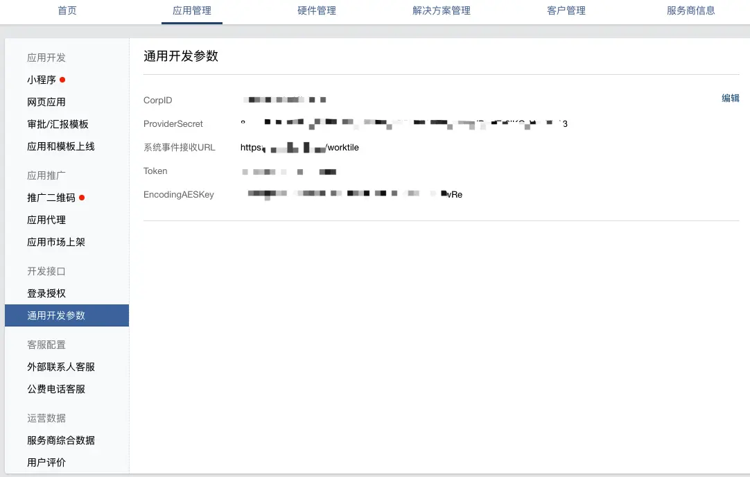 在发生授权、通讯录变更、ticket 变化等事件时,企业微信服务器会向应用的“指令回调 URL”推送相应的事件消息,nodejs 接收到的是 xml,解析后拿到 encrypt 字段,然后使用上面配置通用开发参数的 url 时用的解密方式,就可以得到 suite_ticket。