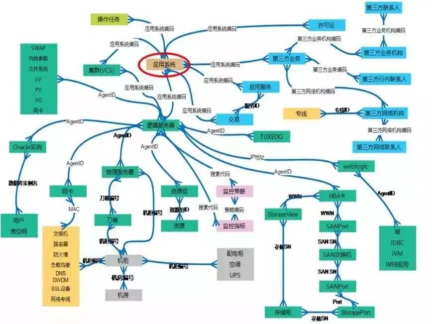 通各领域数据,建立配置信息关联关系,通过配置项与配置项之间的关键字段,将原本分散在各专业领域的孤立信息,以应用系统为原点有机地关联起来,形成配置信息的网络。