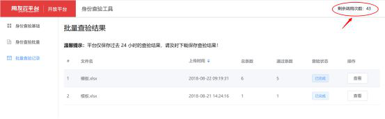 可以供大家查询历史查询记录,另外“剩余调用次数”会