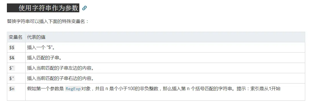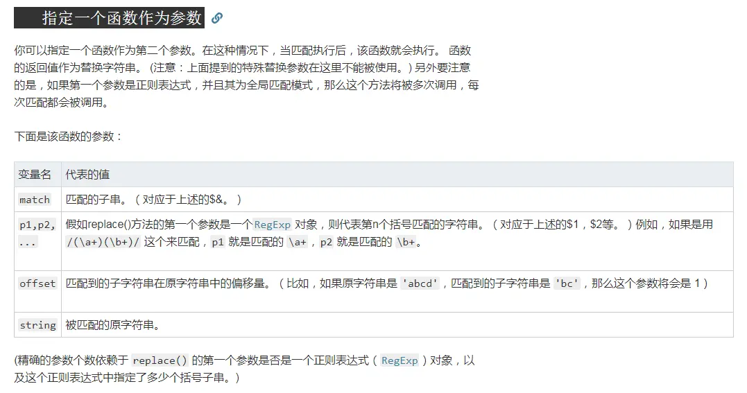 对比之前先了解MDN文档中对于replace第二个参数的两种形态。