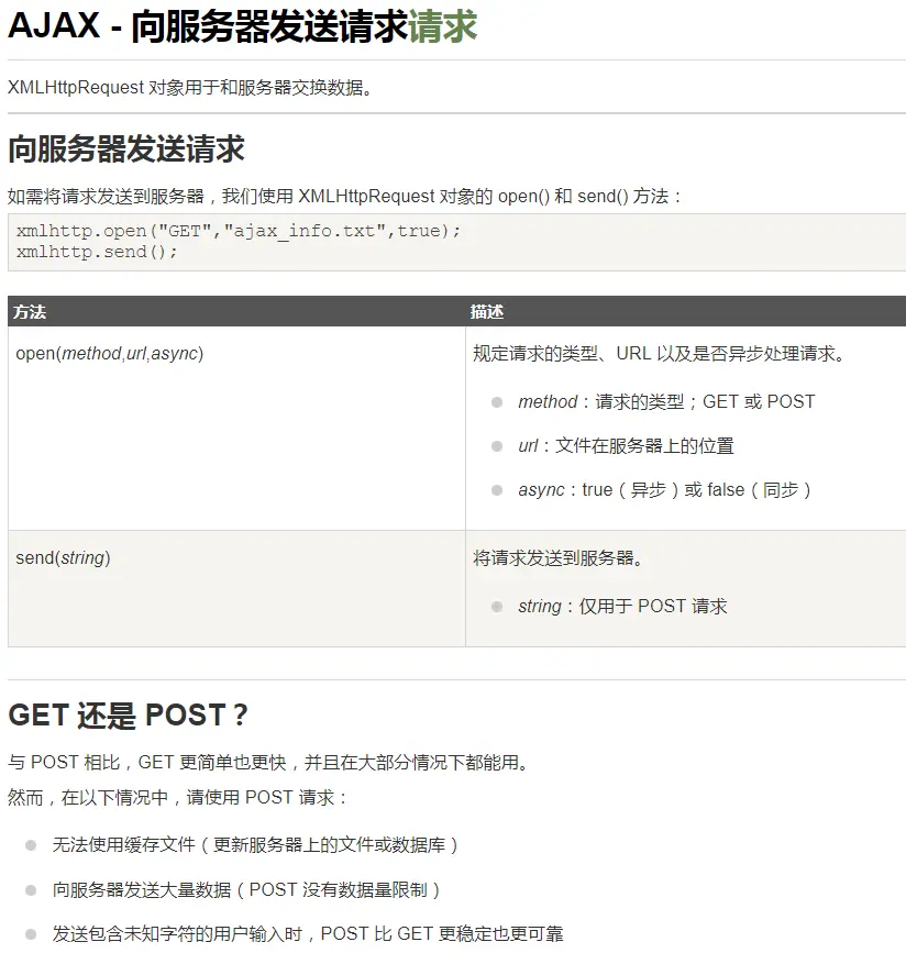 // .open创建一个一个请求,告诉ajax 用什么方式,去请求什么地址,是同步还是异步
