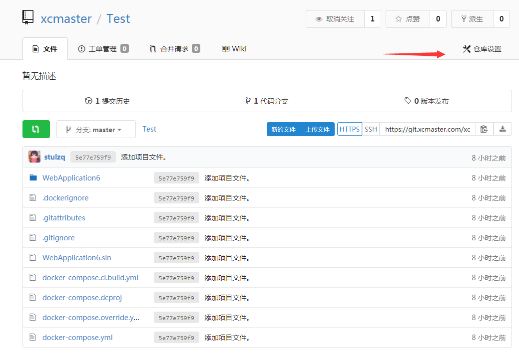 我们回到gogs,点击 推送测试 ,推送成功之后会看到一条推送记录