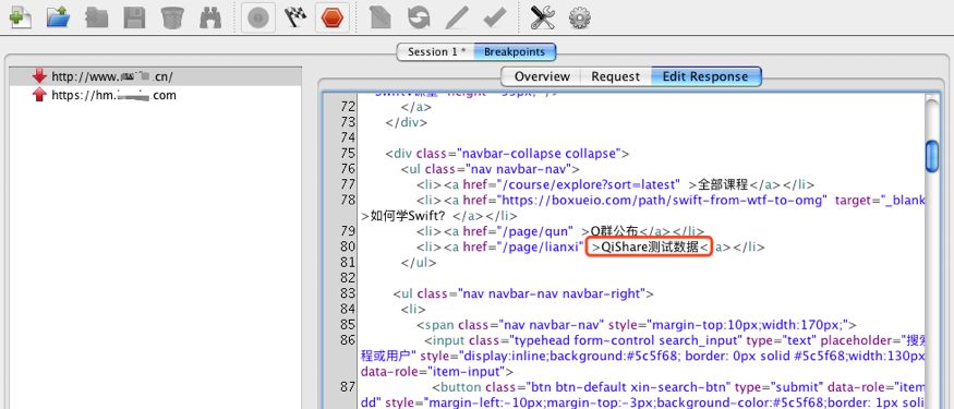 Rewrite适合应用于对请求的批量和长期修改,对请求数据影响较大(测试结束后经常忘记去掉规则)。所以,在一些轻量级的数据修改场景中,我经常结合Breakpoint功能修改数据。