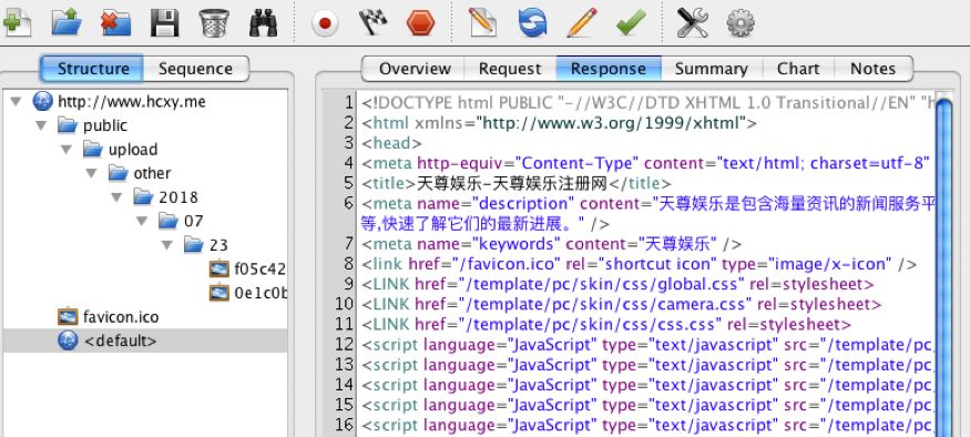 在配置iPhone代理完毕后,就可以通过Structure或者Sequence窗口预览HTTP请求的数据了。但由于HTTPS请求被加密过,预览请求时只能预览到乱码数据。要预览到HTTPS请求的数据明文,需要PC和iPhone安装证书授权。
