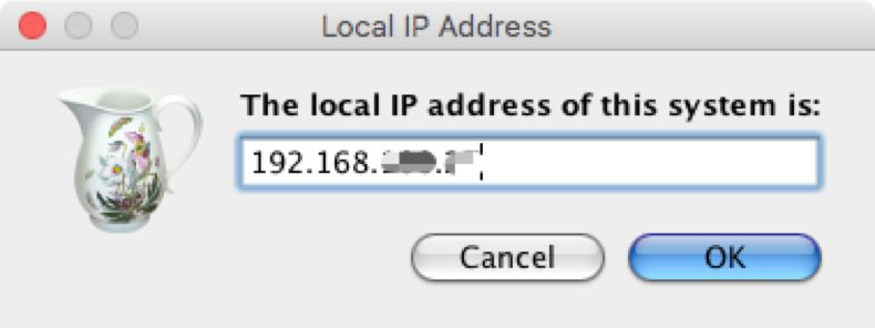 在Charles菜单栏 -> Help -> Local IP Address中可以查看PC的IP地址。图示如下: