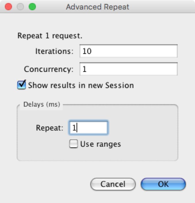 单击Repeat会重发该请求一次,常用于测试服务接口能否正常访问,客户端能否正常收到返回数据等。单击Advanced Repeat 会弹出重发参数编辑页面,图示如下: