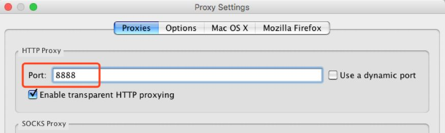 具体的端口可以从Charles菜单栏 -> Proxy -> Proxy Settings中查看。图示如下: