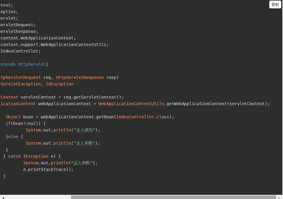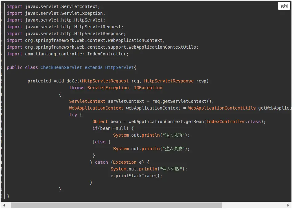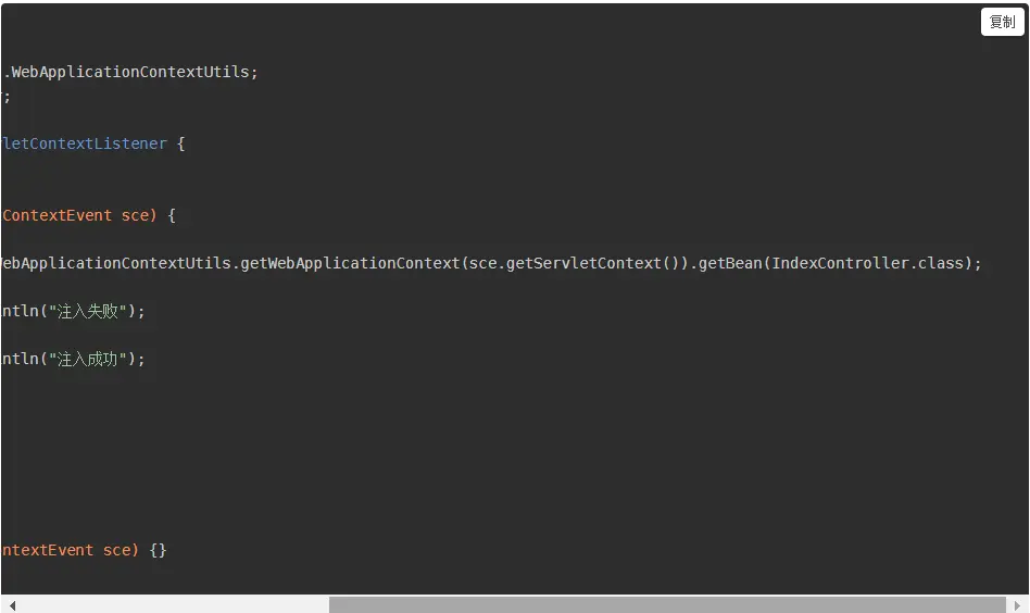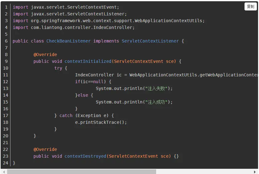 2)编写一个listener,用来在启动时检查bean是否被成功注入,其WebApplicationContex的使用方法如下