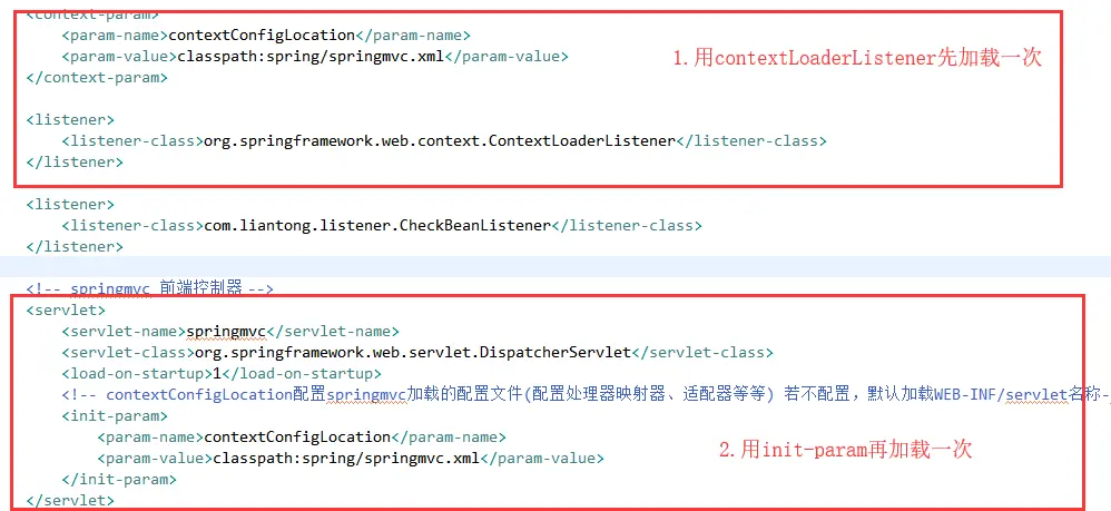 1)同样如上步骤3,必须先用contextloaderlistener来加载applicationContext.xml,再用dispatcherSerlvet的init-param。