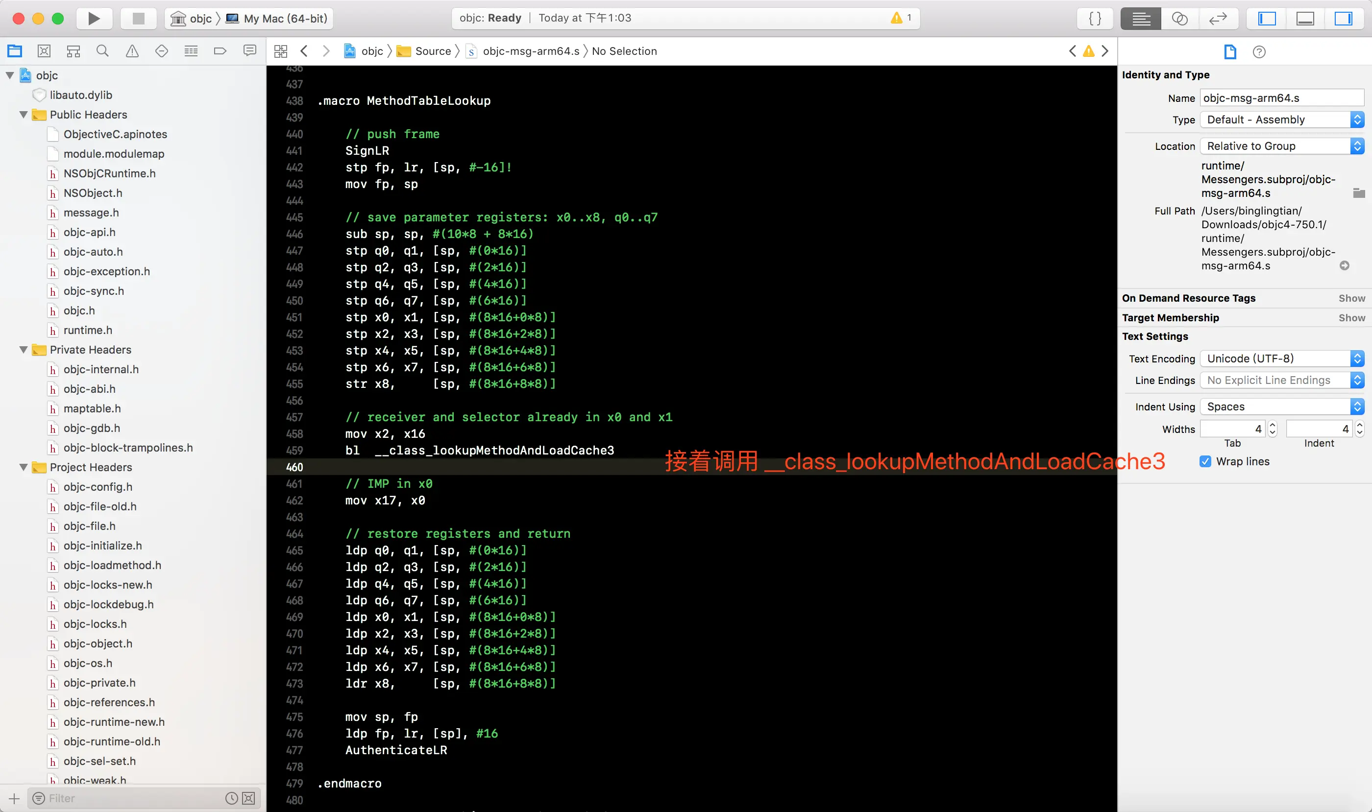 _class_lookupMethodAndLoadCache3, 可以发现_class_lookupMethodAndLoadCache3函数的实现部分