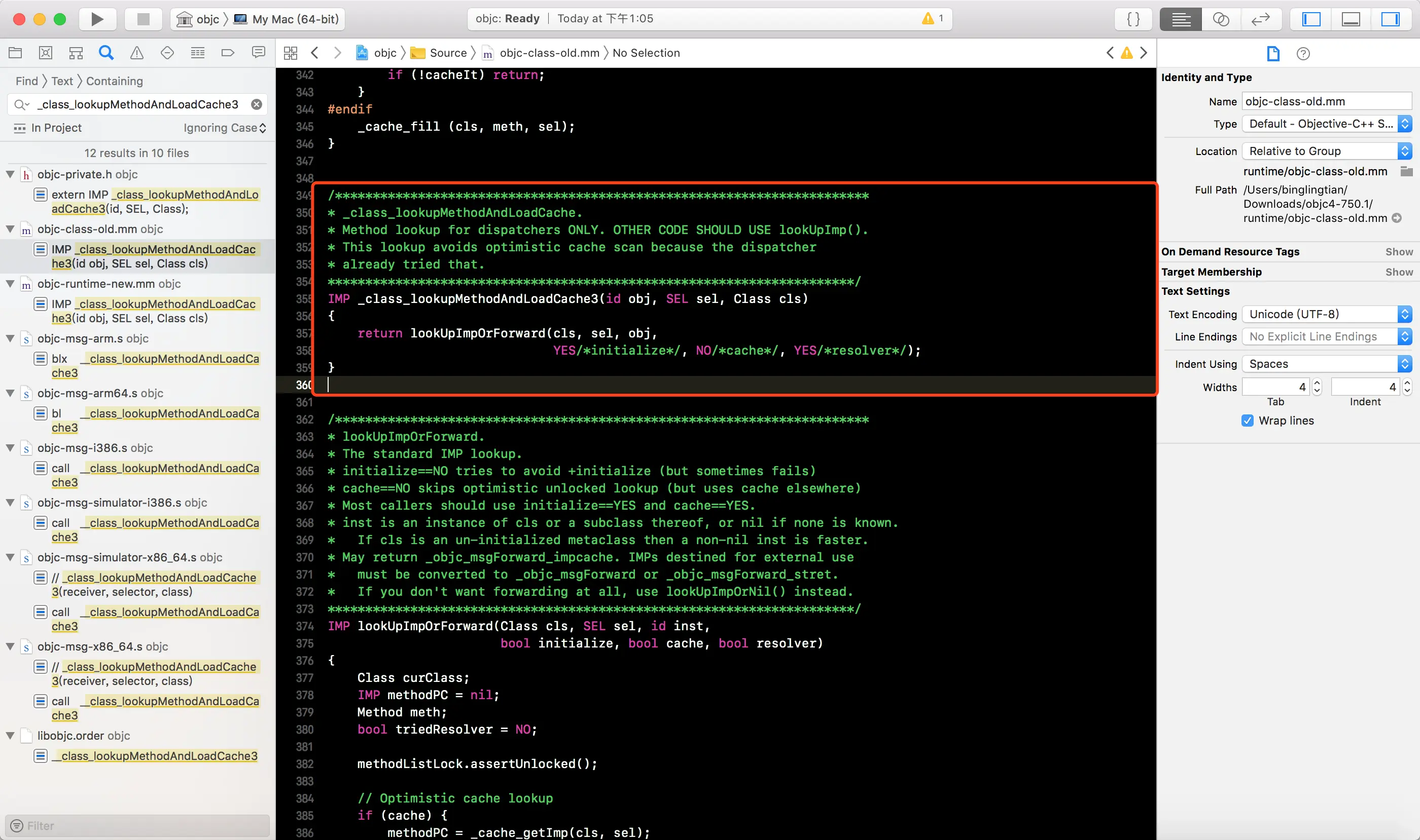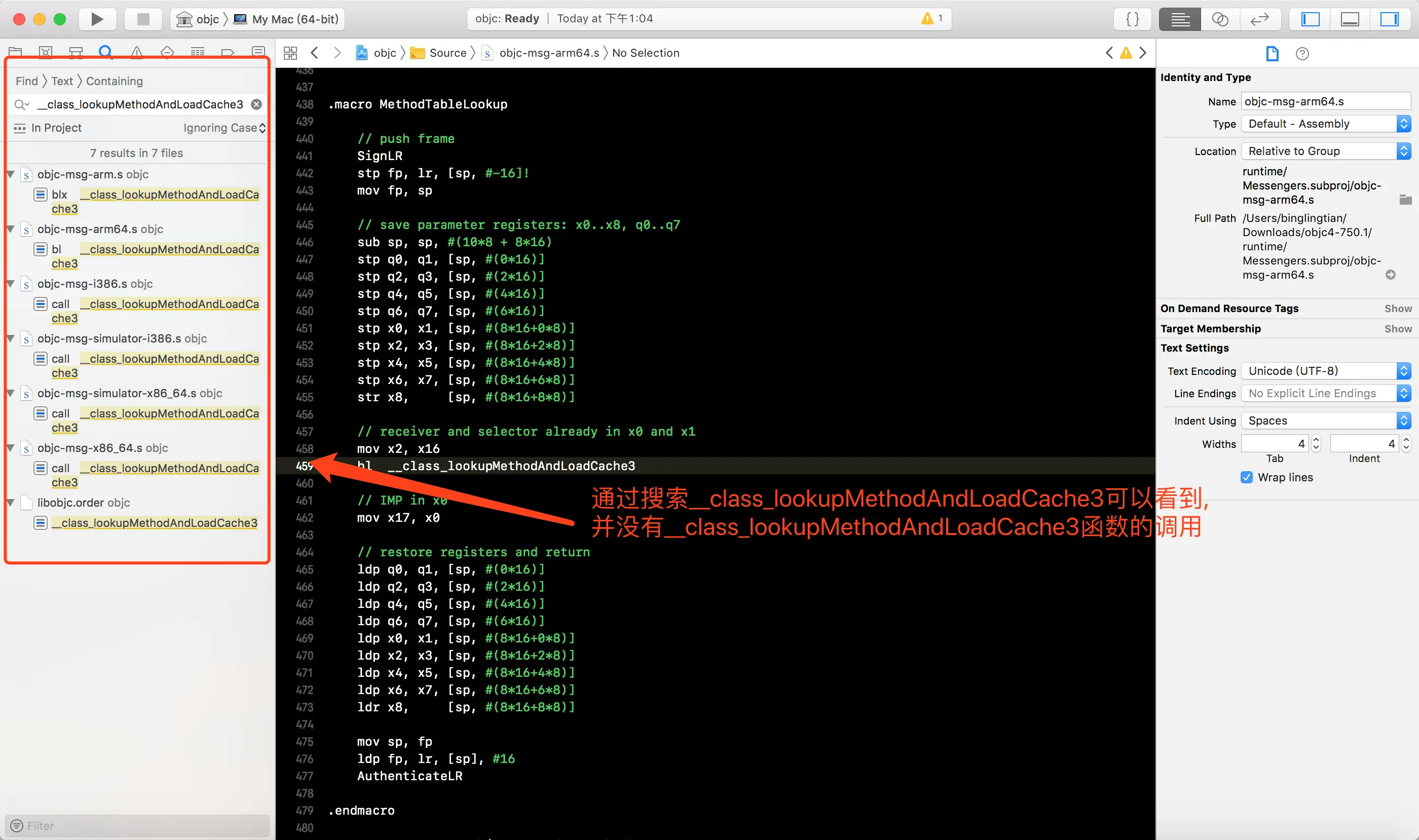 __class_lookupMethodAndLoadCache3函数, 可以发现并没有__class_lookupMethodAndLoadCache3的实现部分