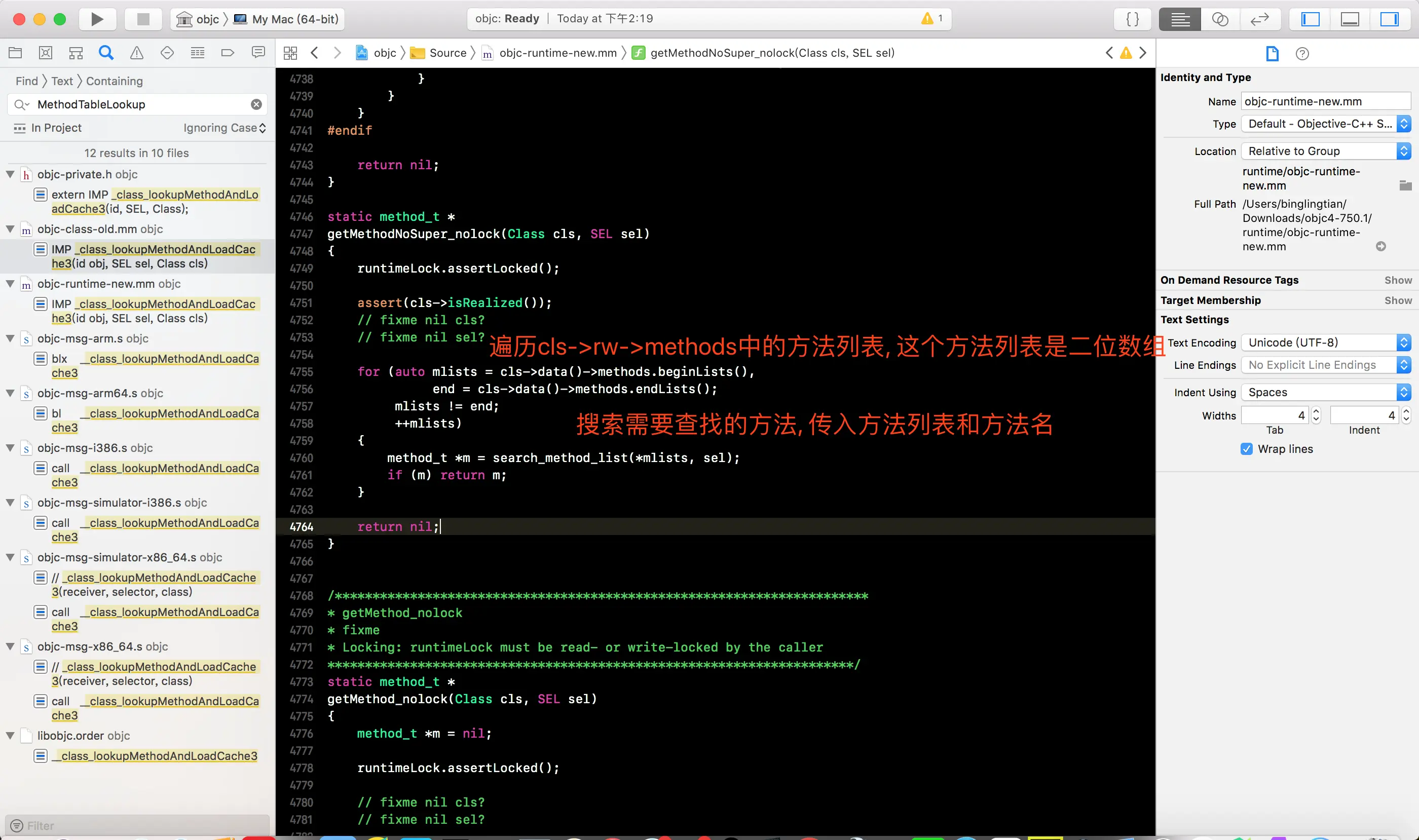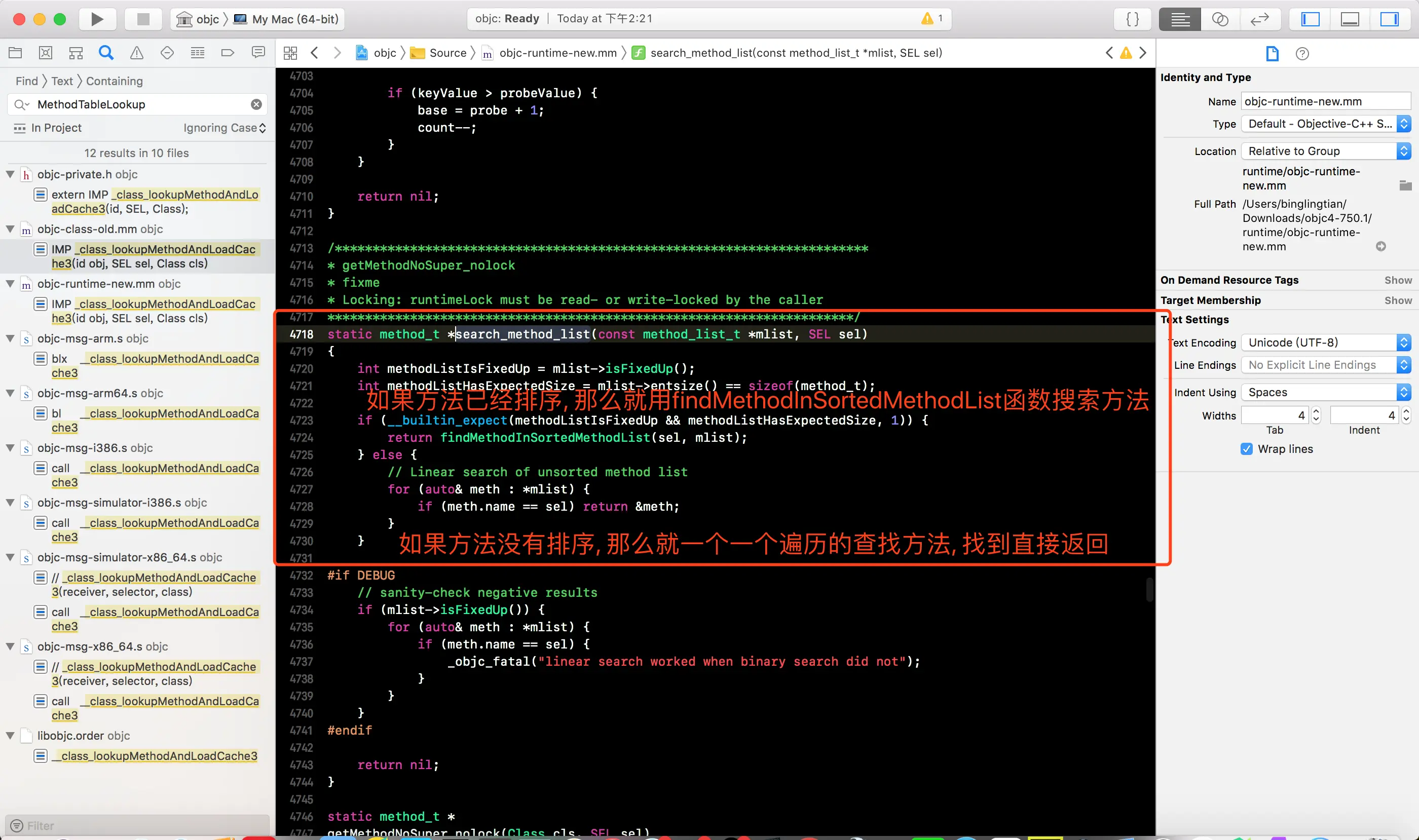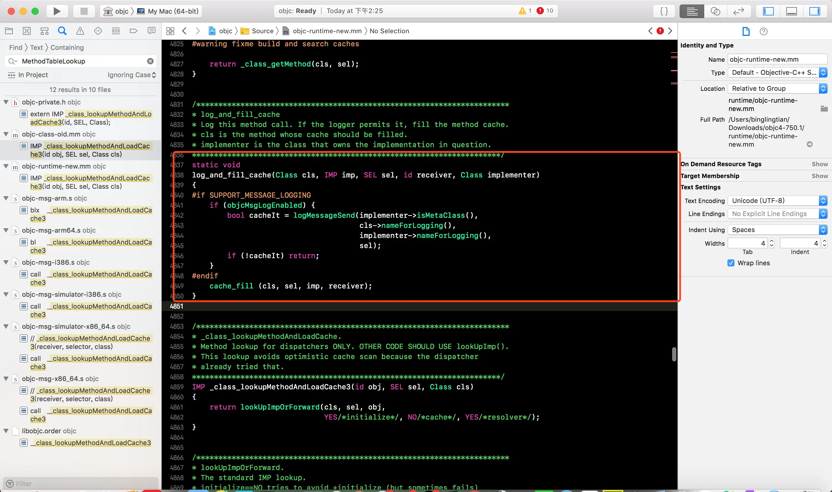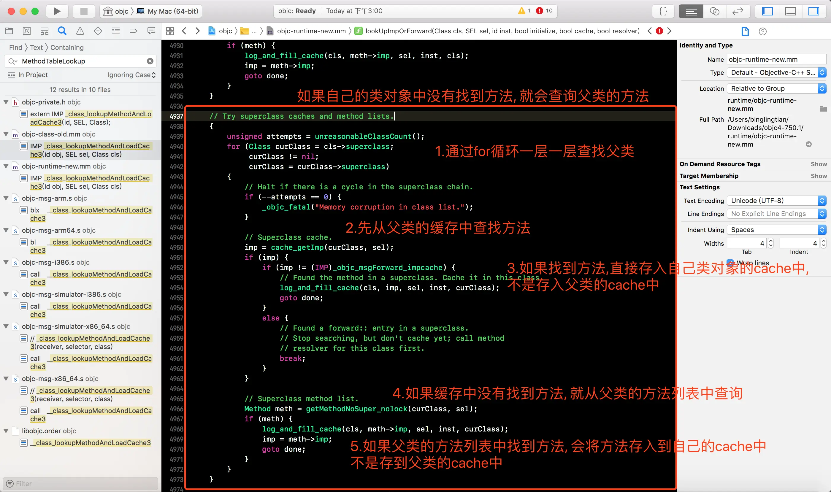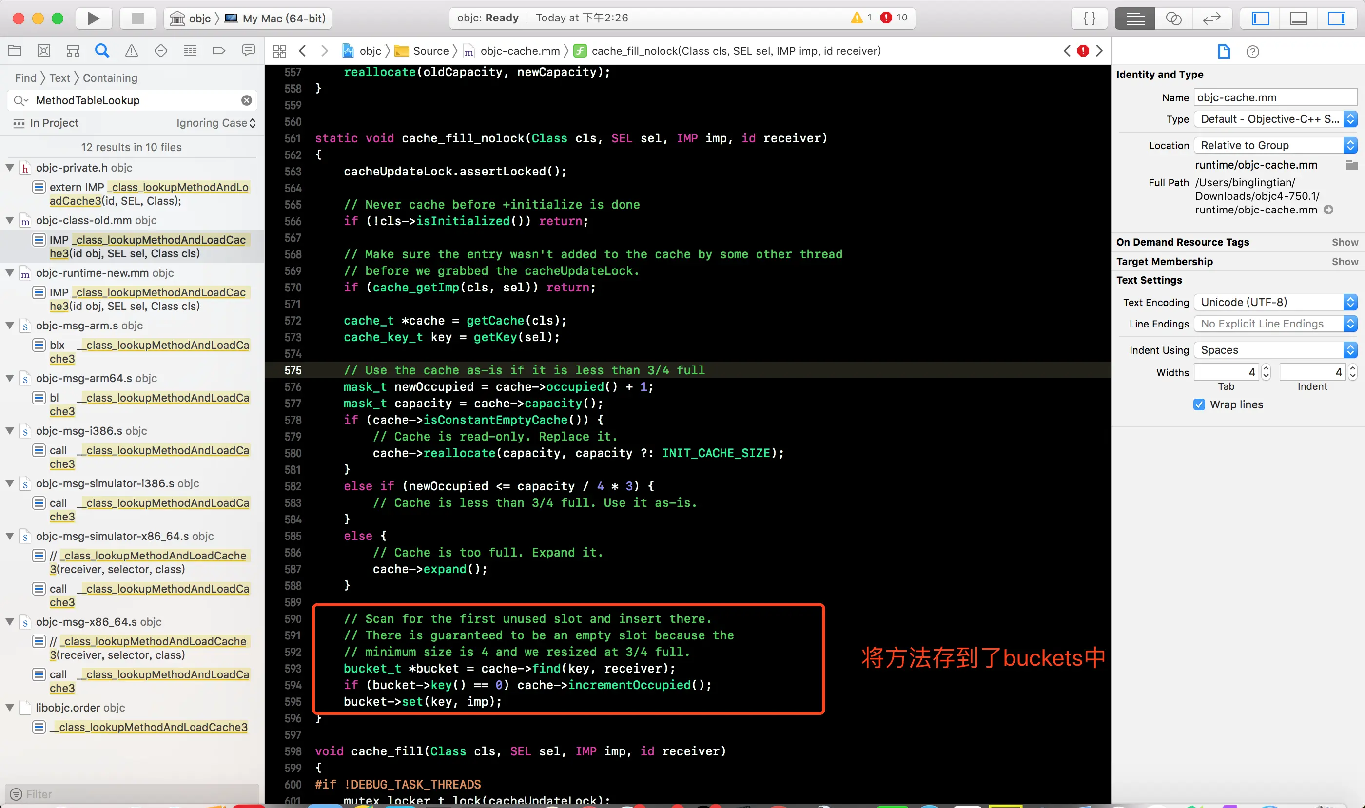 lookUpImpOrForward函数, 可以看到当传入cache为YES时, 会查找缓存中的方法