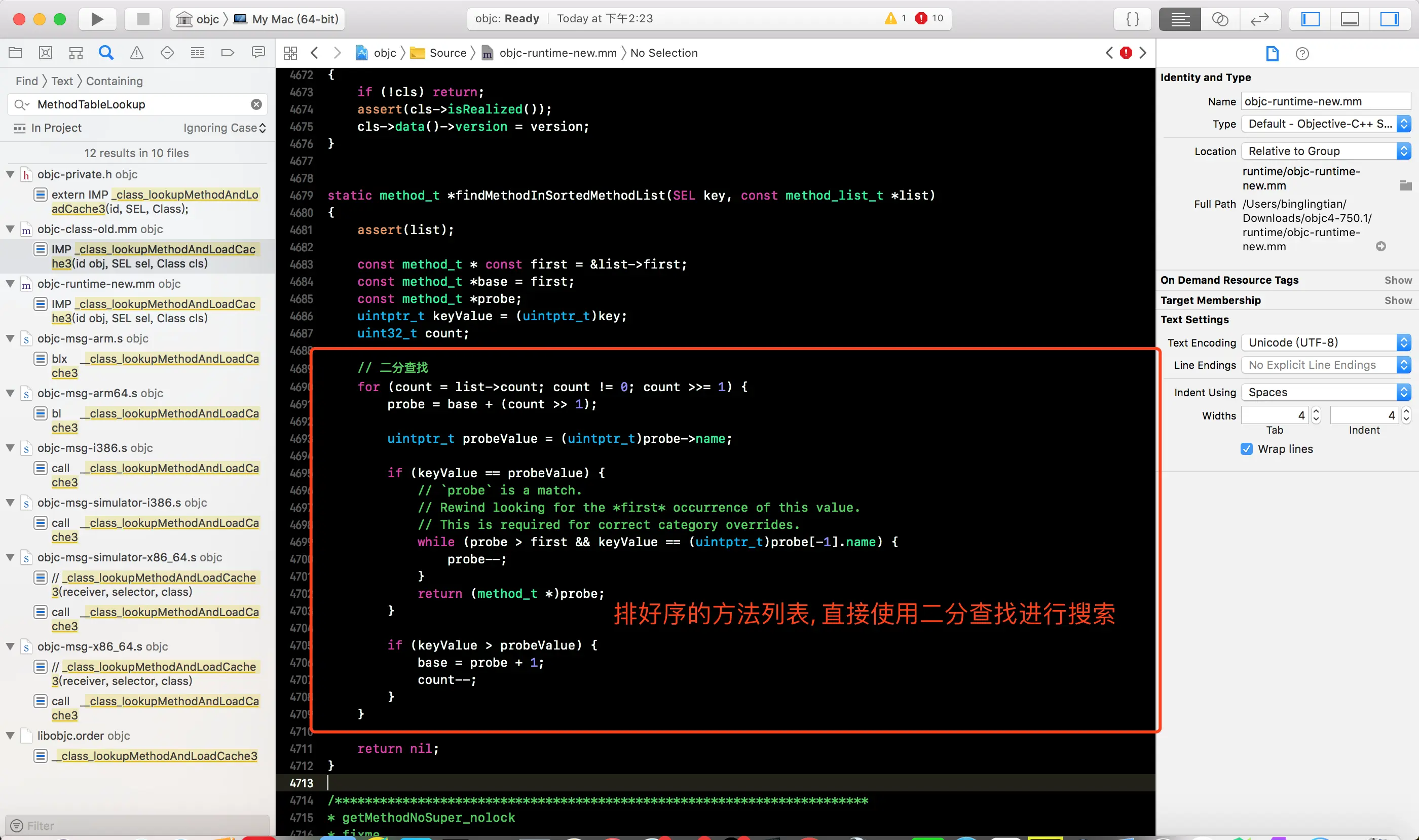 findMethodInSortedMethodList函数使用的是二分查找的方式查询方法