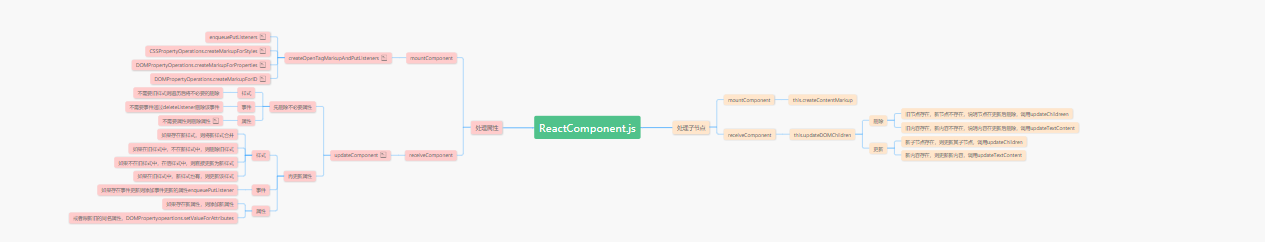当执行mountComponent时,ReactDOMComponent首先会生成标记和标签。通过createOpenTagMarkupAndPutListeners(transaction) 来处理DOM节点的属性和事件。