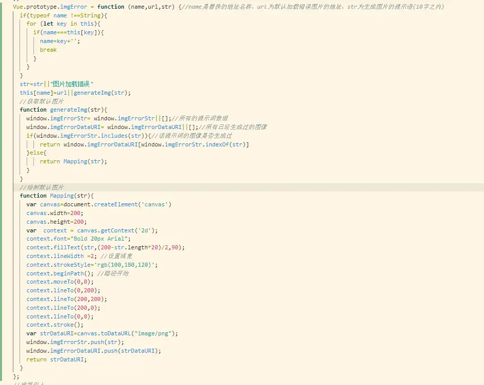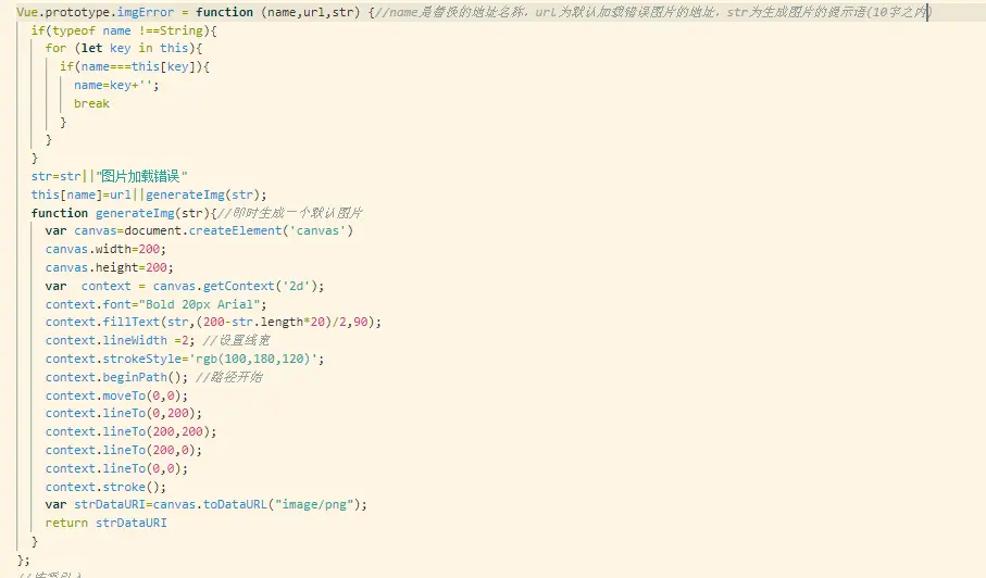Vue.prototype.imgError = function (name,url,str) {//name是替换的地址名称,url为默认加载错误图片的地址,str为生成图片的提示语(10字之内)