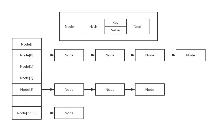 由上图可知,HashMap的Y轴方向是数组,X轴方向就是链表的存储方式。