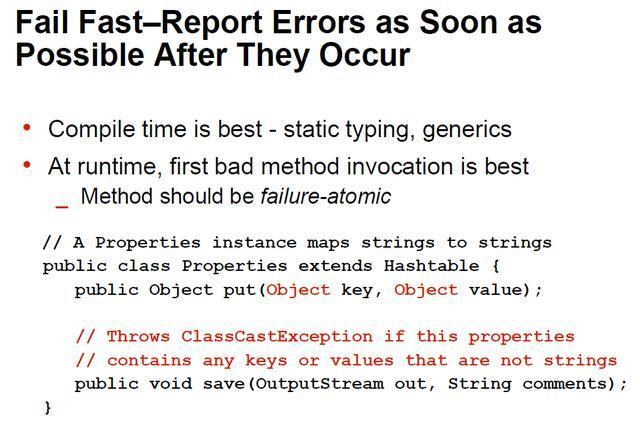 采用fail fast 策略,尽可能早地抛出错误消息: