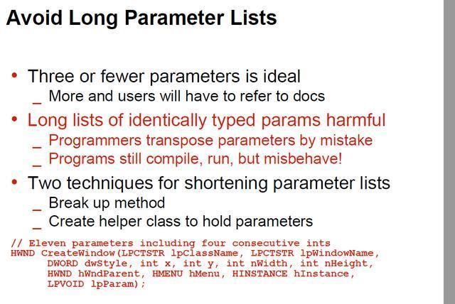 避免冗长的参数列表,参数如果超过3个,使用者就需要通过阅读文档才能消费了。