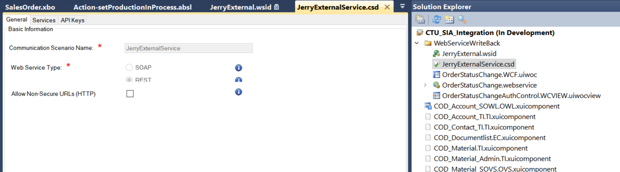 然后在Cloud for Customer的Cloud Application Studio里创建Restful API的模型,把第一步可以正常工作的Restful API url填进模型里去: