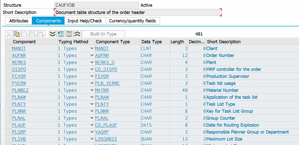 这个CAUFVDB里存放的是生产订单抬头级别的数据: