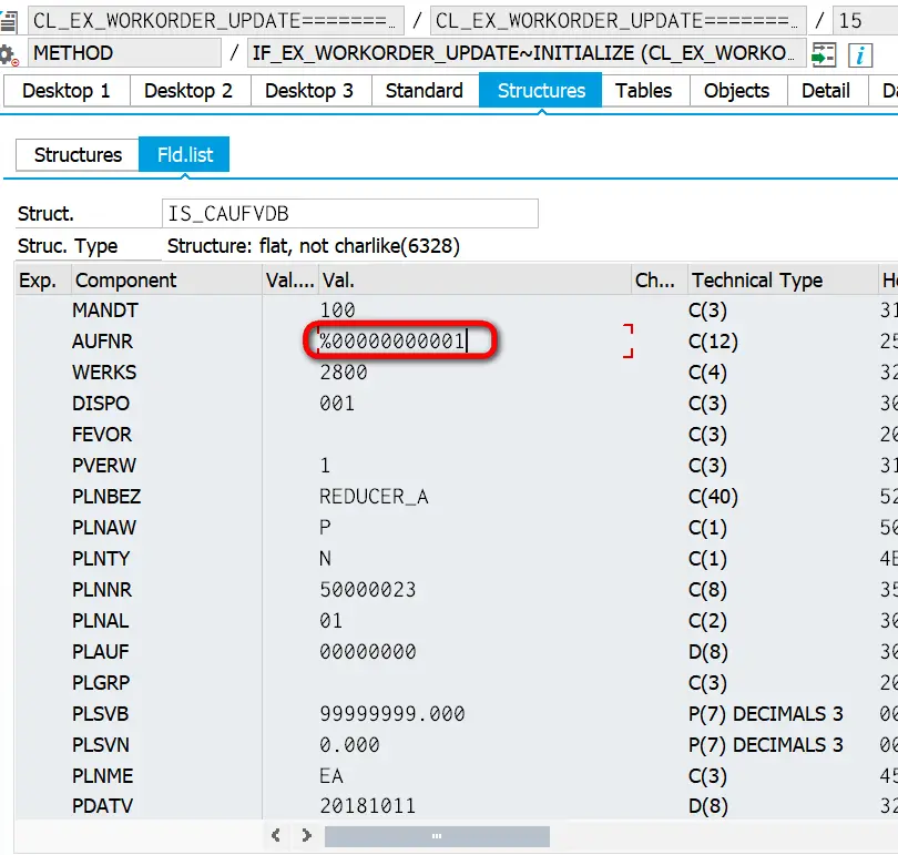 在S/4HANA里创建生产订单时,有一个增强点WORKORDER_UPDATE: