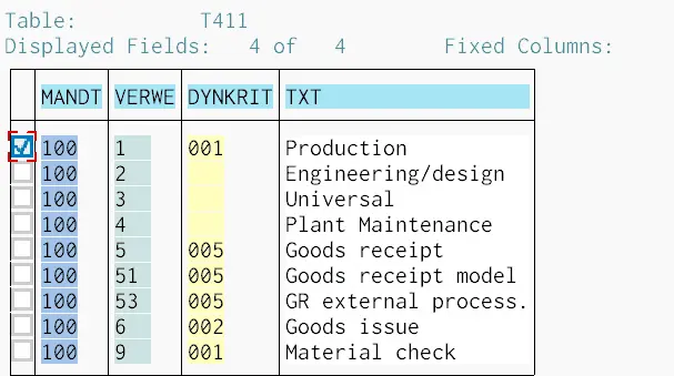 在表T411里发现1代表Production: