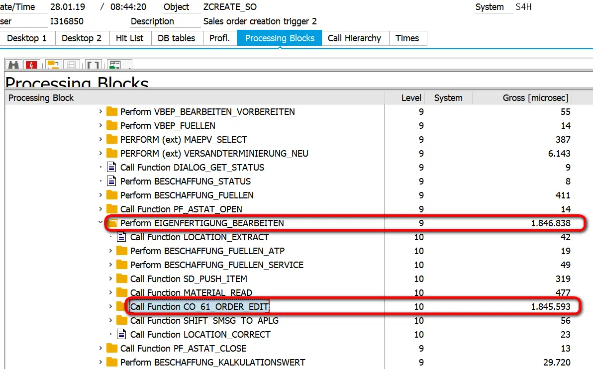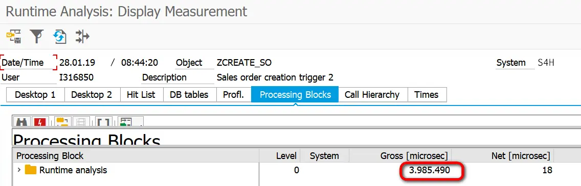用事务码SAT分析,发现总共创建消耗的时间为3.98秒,