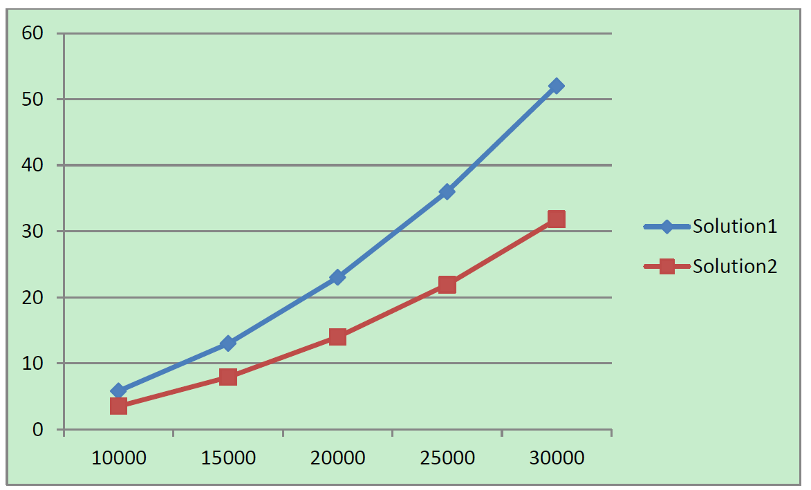 通过比较,第二种解决方案的效率是第一种的四倍。