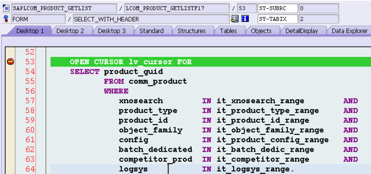 Improvement: use DELETE XXX WHERE product_id NOT IN . It is more efficient when lt_srv_bom_file has a huge number of records. See comparison below ( unit: second )