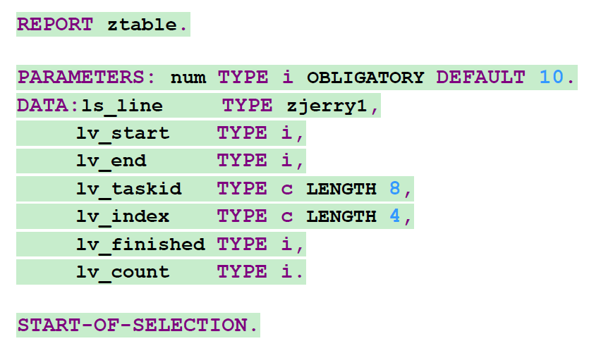 如果需要用ABAP OPEN SQL读取一张包含海量记录的数据库表,那么推荐使用OPEN CURSOR进行分块读取。