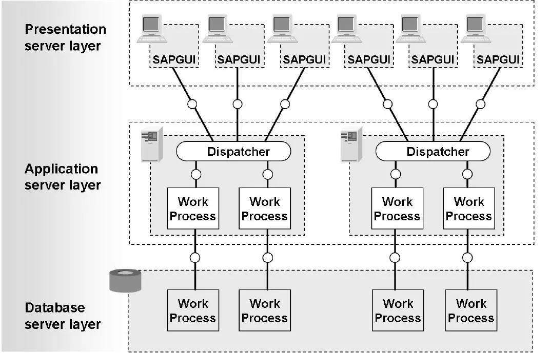这里能看出应用服务器层是支持负载均衡的,SAPGUI的使用者会指定消息服务器Message Server的地址,