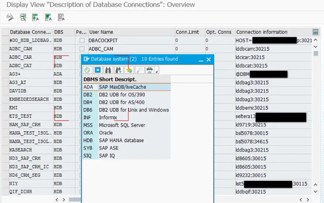 从DBMS这个字段能得到所有NetWeaver支持的数据库服务器,比如MaxDB,Infomix,微软的SQL Server,Oracle DB等。