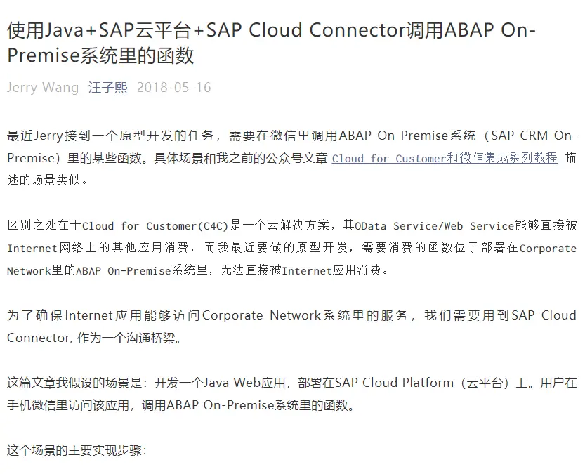 详情参考我的文章:使用Java+SAP云平台+SAP Cloud Connector调用ABAP On-Premise系统里的函数:
