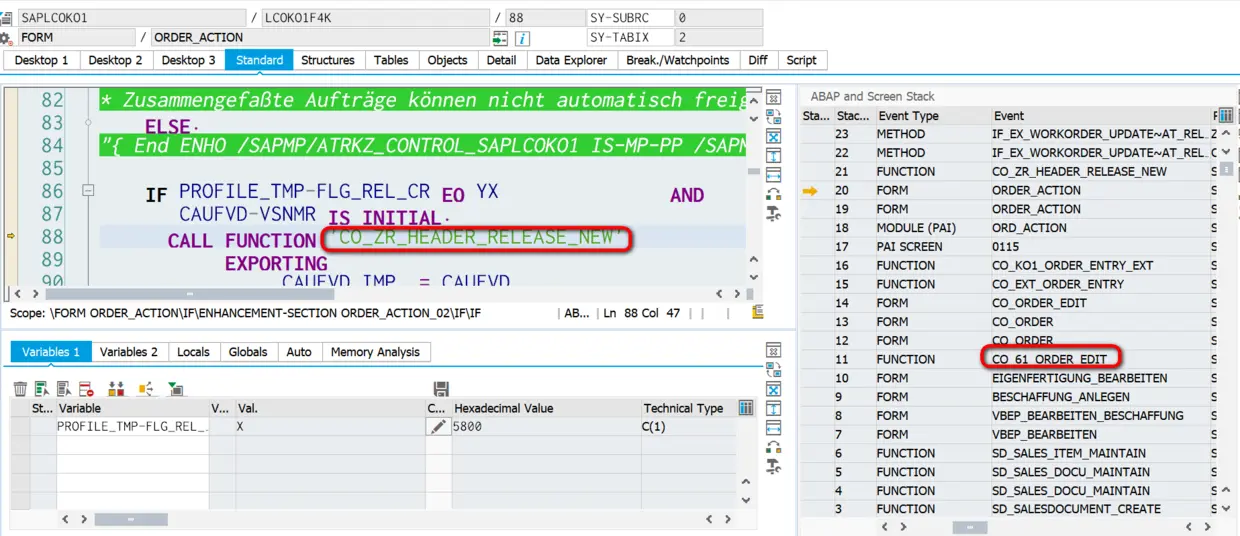 在S/4HANA系统里我们观察到通过函数CO_61_ORDER_EDIT创建的生产订单会自动释放Release: