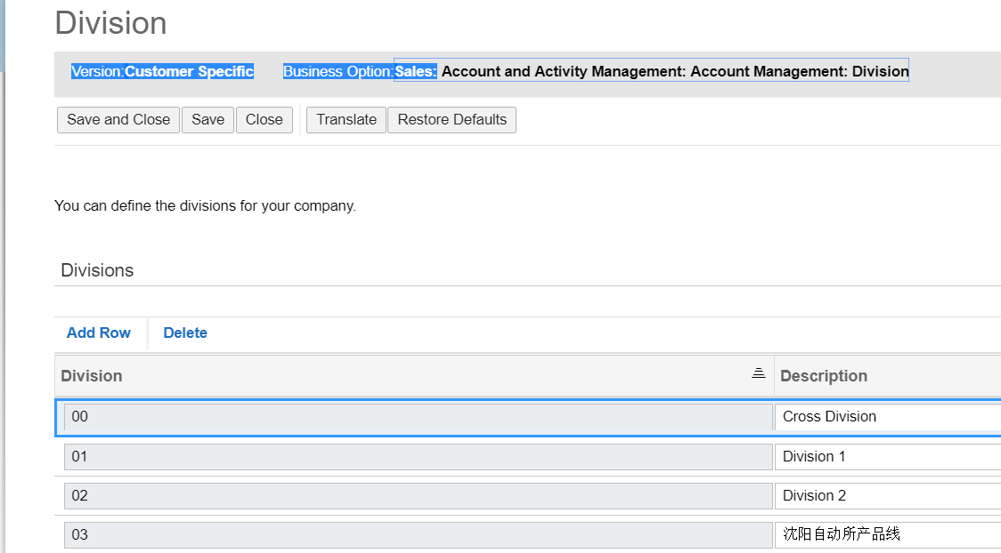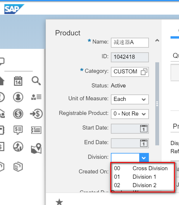 如图:C4C产品主数据division字段默认的下拉菜单选项: