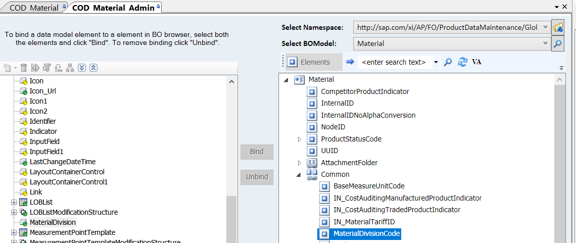 再找到这个UI模型字段绑定到的core BO字段:Material.Common.MaterialDivisionCode: