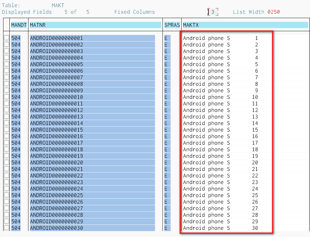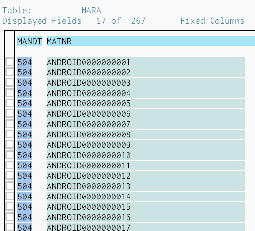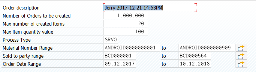 Now in this report, you specify Material Number Range as ANDROID00000000001 and ANDROID00000010000, so that when this report create a new line item, it will randomly pick up a material among this material repository and assigned to created line item.