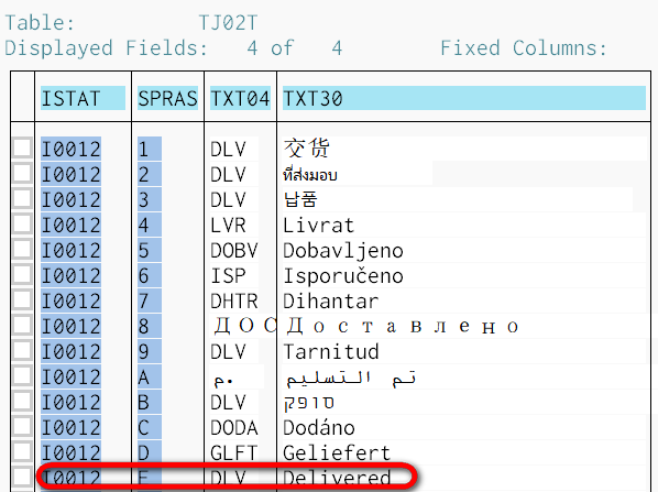 只要生产订单的状态里包含I0012 - distributed to MES, 就认为该订单处于已交货状态