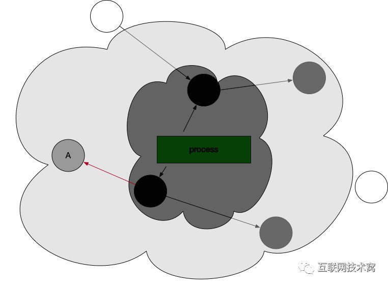 然后开始标记,process找出它所有可达的对象,并做上标记。如下图所示: