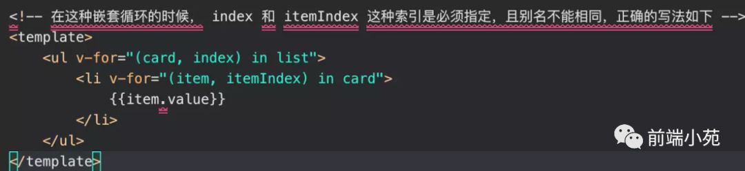 mpvue使用v-for与vue一致,只是需要注意一点,嵌套列表渲染,必须指定不同的索引!