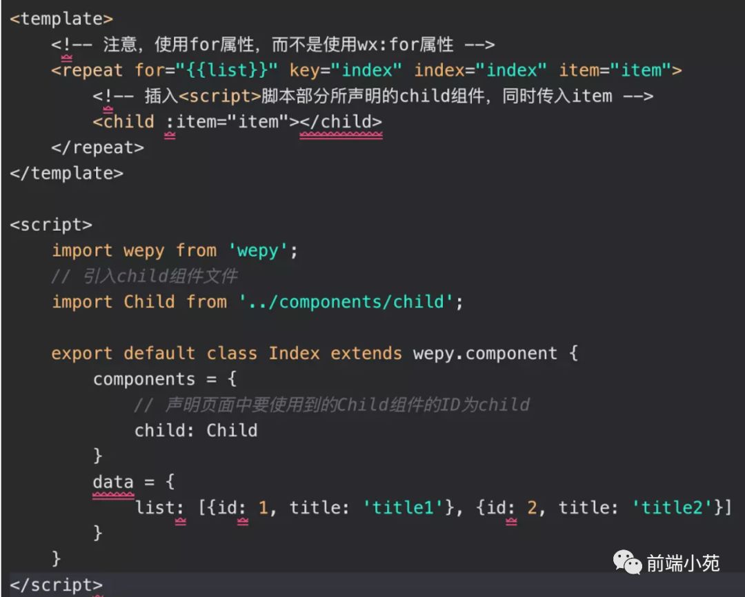 wepy当需要循环渲染WePY组件时(类似于通过wx:for循环渲染原生的wxml标签),必须使用wepy定义的辅助标签。