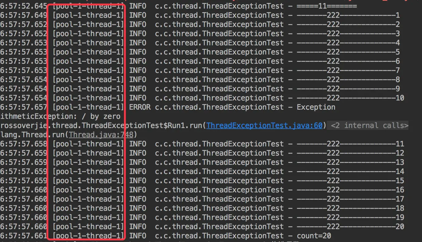 - 发现线程池已经帮我们做了异常捕获,但依然会往上抛。