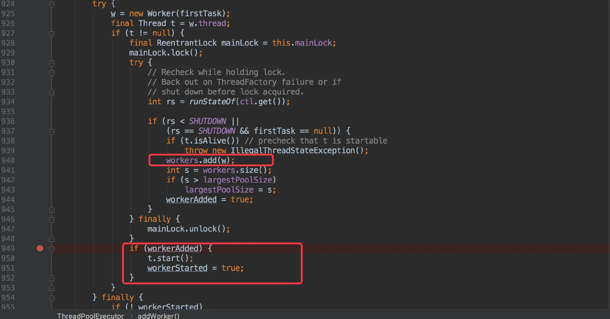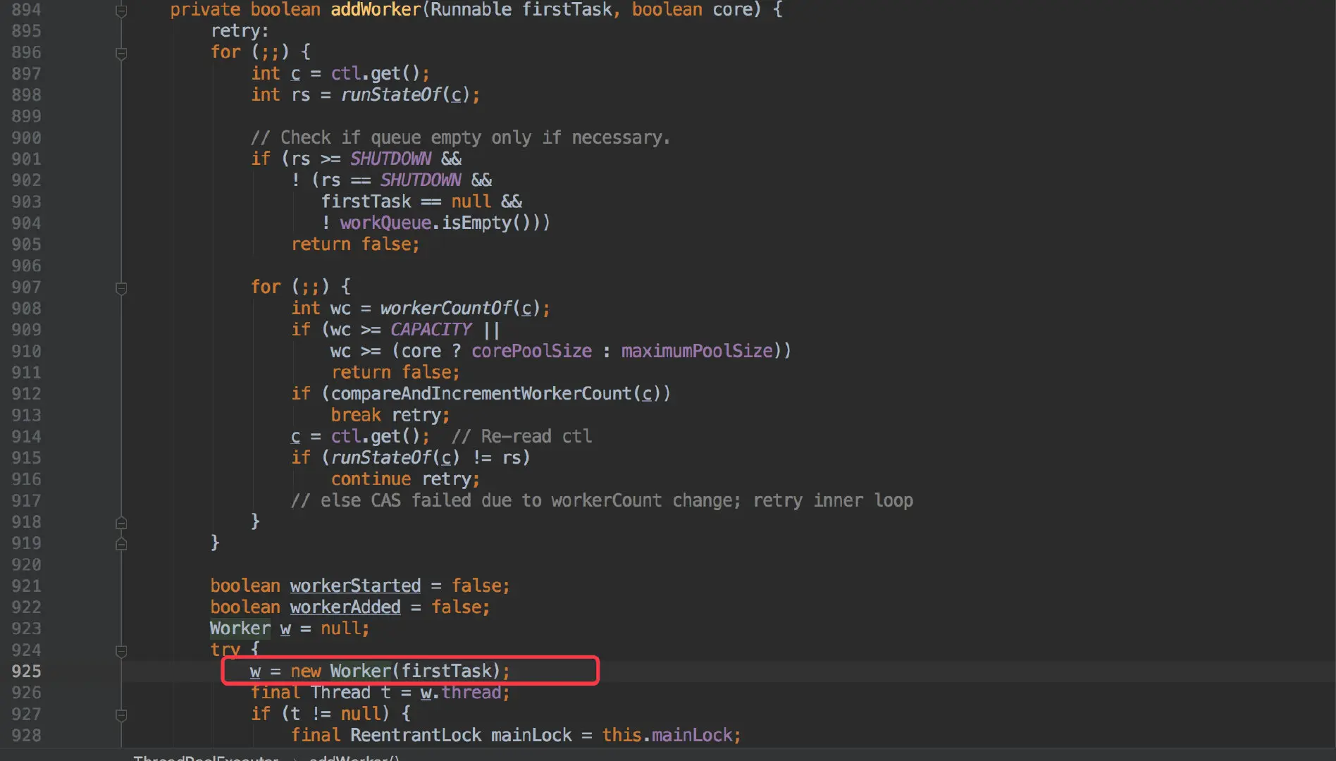 线程池中的任务都会被包装为一个内部 Worker 对象执行。