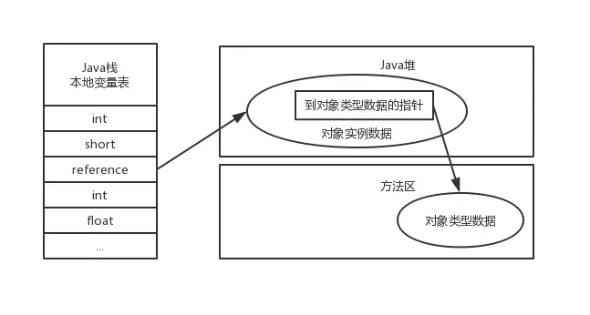 如果使用直接指针访问,那么Java堆对象的布局中就必须考虑如何放置访问类型数据的相关信息,而reference中存储的直接就是对象地址。如下图所示。