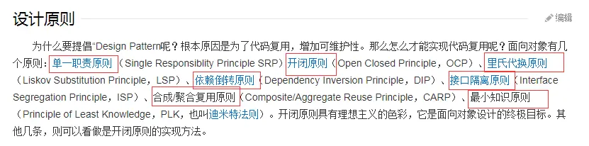 (设计模式的百度百科中设计原则总起段关于面向对象的几个原则)