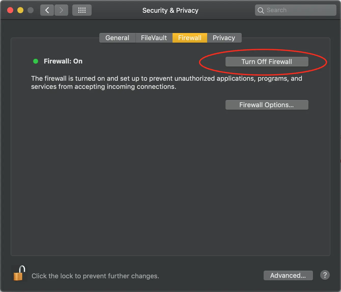 小提示:Raspberry Pi需要连接到LAN中的本地计算机。在macOS中,确保转到设置=>安全和隐私=>防火墙,然后单击“关闭 ”按钮。